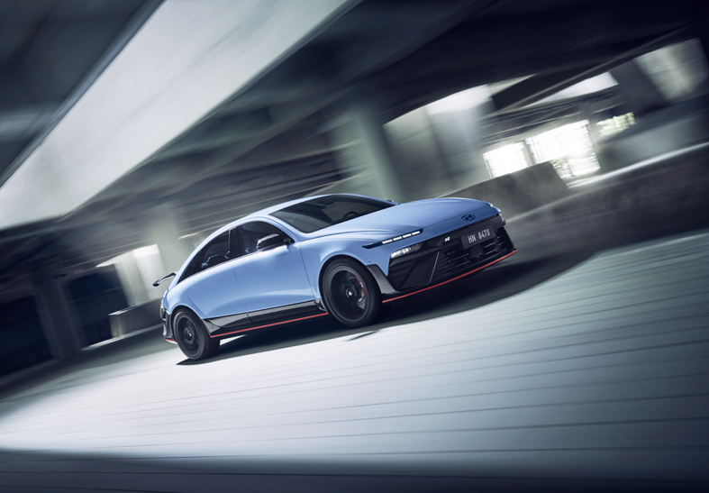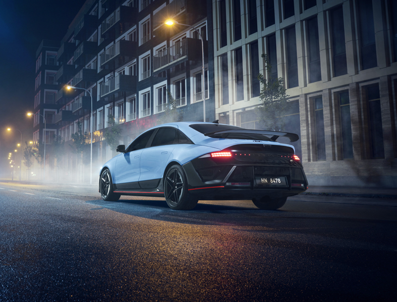 IONIQ 6 N’in aerodinamik yapısı da performansı destekleyecek şekilde geliştirildi. Motorsporlarından ilham alan kuğu boynu şeklindeki arka spoyler ve genişletilmiş çamurluklar gibi detaylar, sadece güçlü bir görünüm sunmakla kalmıyor, aynı zamanda yüksek hızda denge sağlıyor. Yeni “Performance Blue Pearl” rengi ise Hyundai N’in imzası olan mavi rengin daha rafine ve derin bir yorumunu sunuyor.