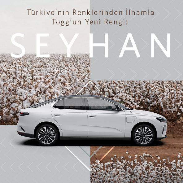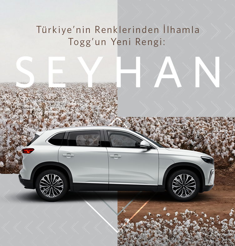 Daha önce Türkiye’nin farklı bölgelerinden esinlenerek geliştirilen “Anadolu”, “Gemlik”, “Oltu”, “Kula”, “Kapadokya”, “Pamukkale”, “Urla”, “Ayder” ve “Mardin” renklerine eklenen “Seyhan”, Akdeniz bölgesini de Togg’un renk yolculuğuna dahil ediyor. Kullanıcılar, T10X ve T10F modellerinde bu yeni rengi tercih edebilecek.